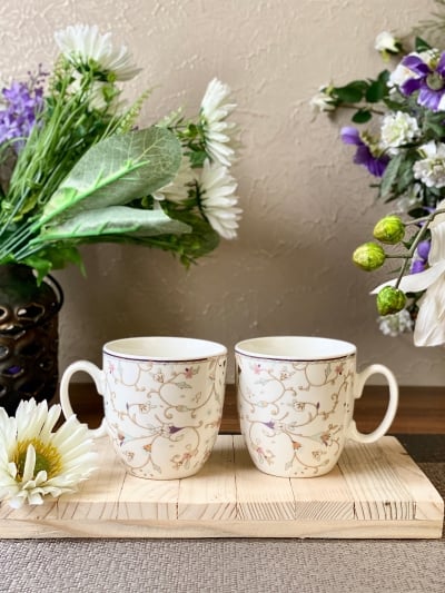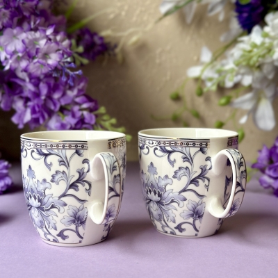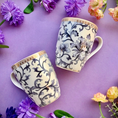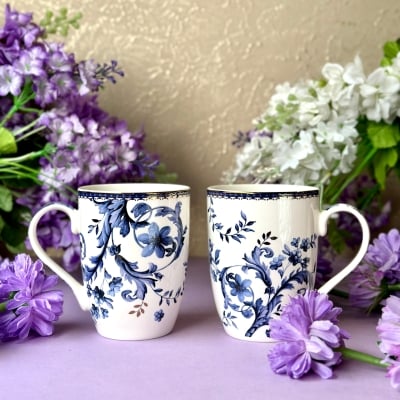 White Pattern Coffee Mugs (Set of 2, 300 ML)
