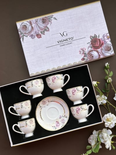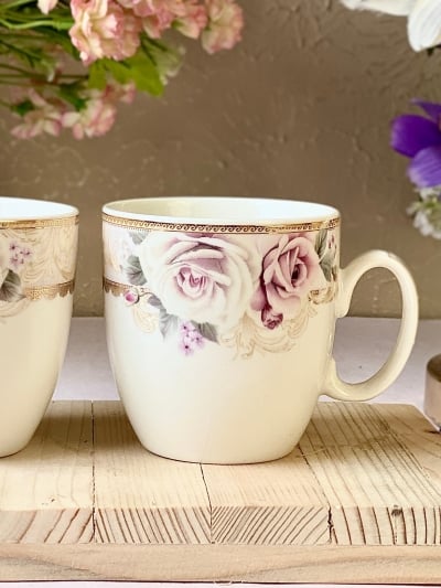 Gold Roses Mug Set (Capacity 200 ML, Set of 6)