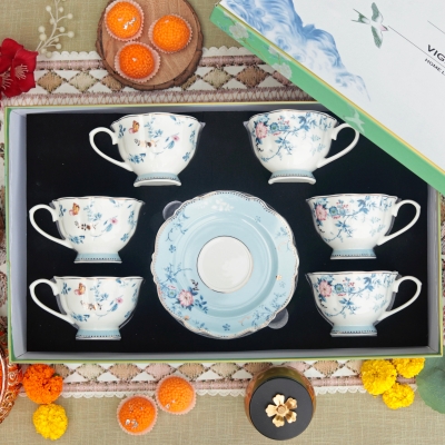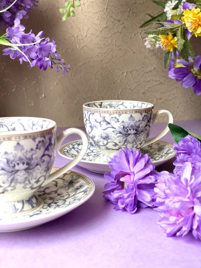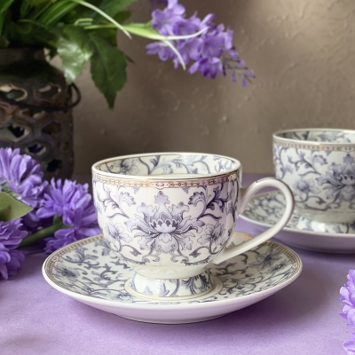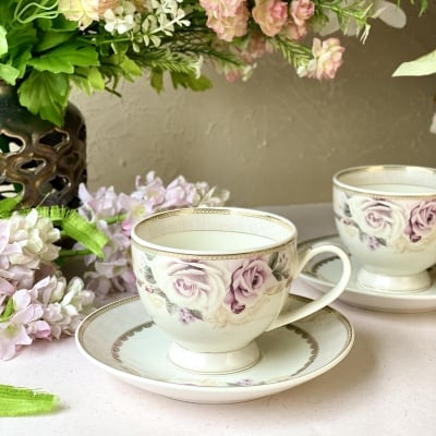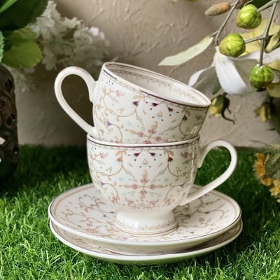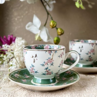 Spring Meadows Cup and Saucer Set (Vintage Collection, 6 Cups and 6 Saucers)