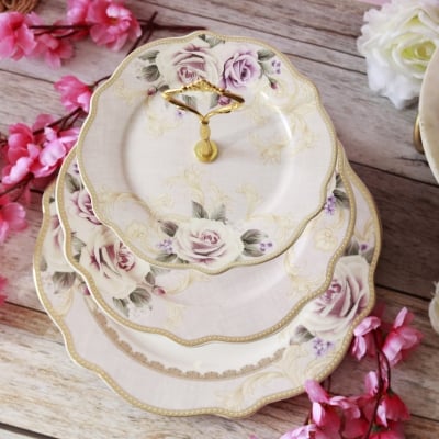 Gold Roses Three Tier Dessert Stand