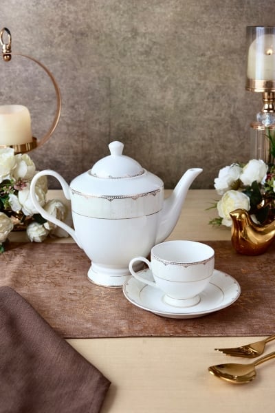 White Pattern 15 Pcs Tea Set