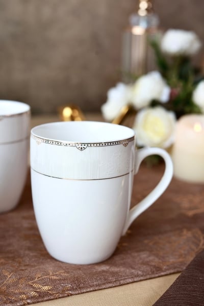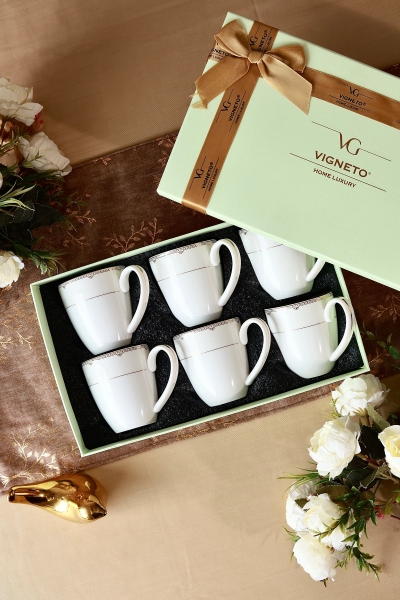 White Pattern Mug Set (Capacity 200 ML, Set of 6)