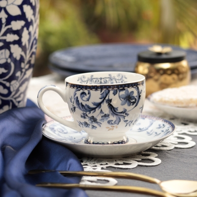 Royal Blue Cup and Saucer Set (6 Cups and 6 Saucers)