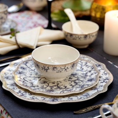 Maras 24-Piece Bone China Dinner Set for 6 People, Black