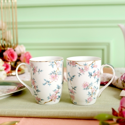 Victorian Green Coffee Mugs (Set of 2, 300 ML)