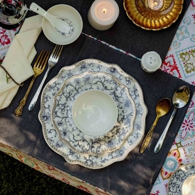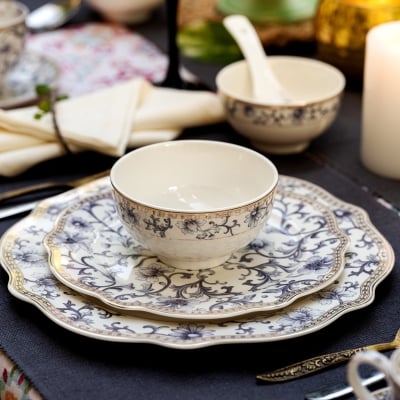 Forever Bone China Antique 24-Piece Dinner Set for 6 People, Multicolour