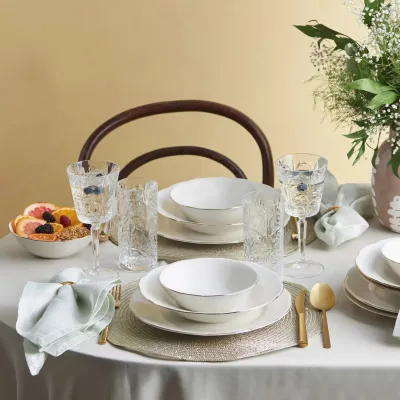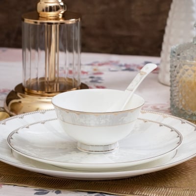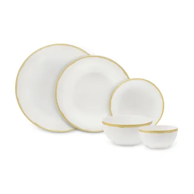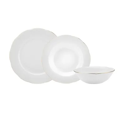 Rebeca 18-Piece Bone China Dinner Set for 6 People, White Gold