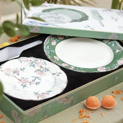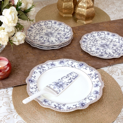Spring Meadows 8 Pcs Snack Set (1 Serving Plate, 6 Quarter Plates, 1 Server)