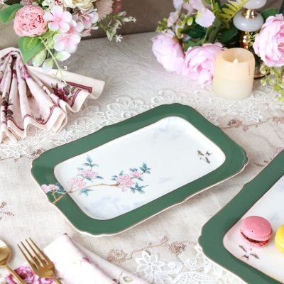 Victorian Green Snack Platter (Set of 2)