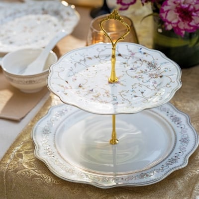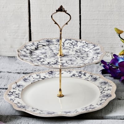 White Pattern Two Tier Dessert Stand