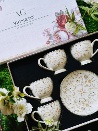 Gold Roses Cup and Saucer Set (6 Cups and 6 Saucers)