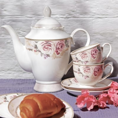 Gold Roses 15 Pcs Tea Set
