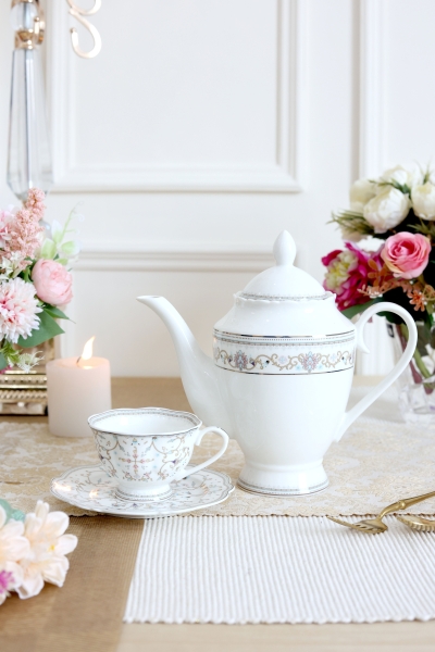 White Pattern 15 Pcs Tea Set (Vintage Collection)