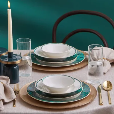 Zümrüt 24-Piece Porcelain Dinner Set for 6 People, Green White