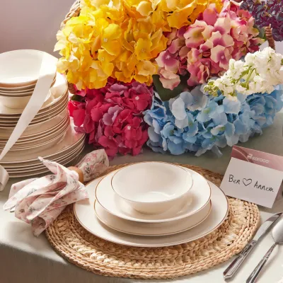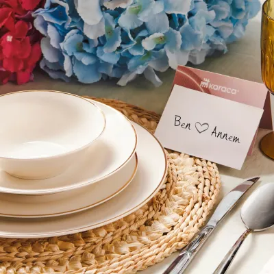 Yonca 18-Piece Porcelain Dinner Set for 6 People, White Gold