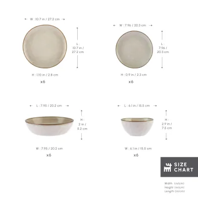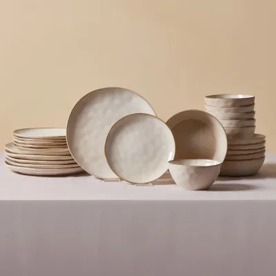 Aria 24-Piece Reactive Glaze Dinner Set for 6 People, Beige