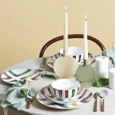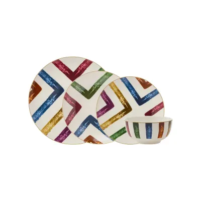 Colourful Blush Line 24-Piece Porcelain Dinner Set for 6 People, Multi