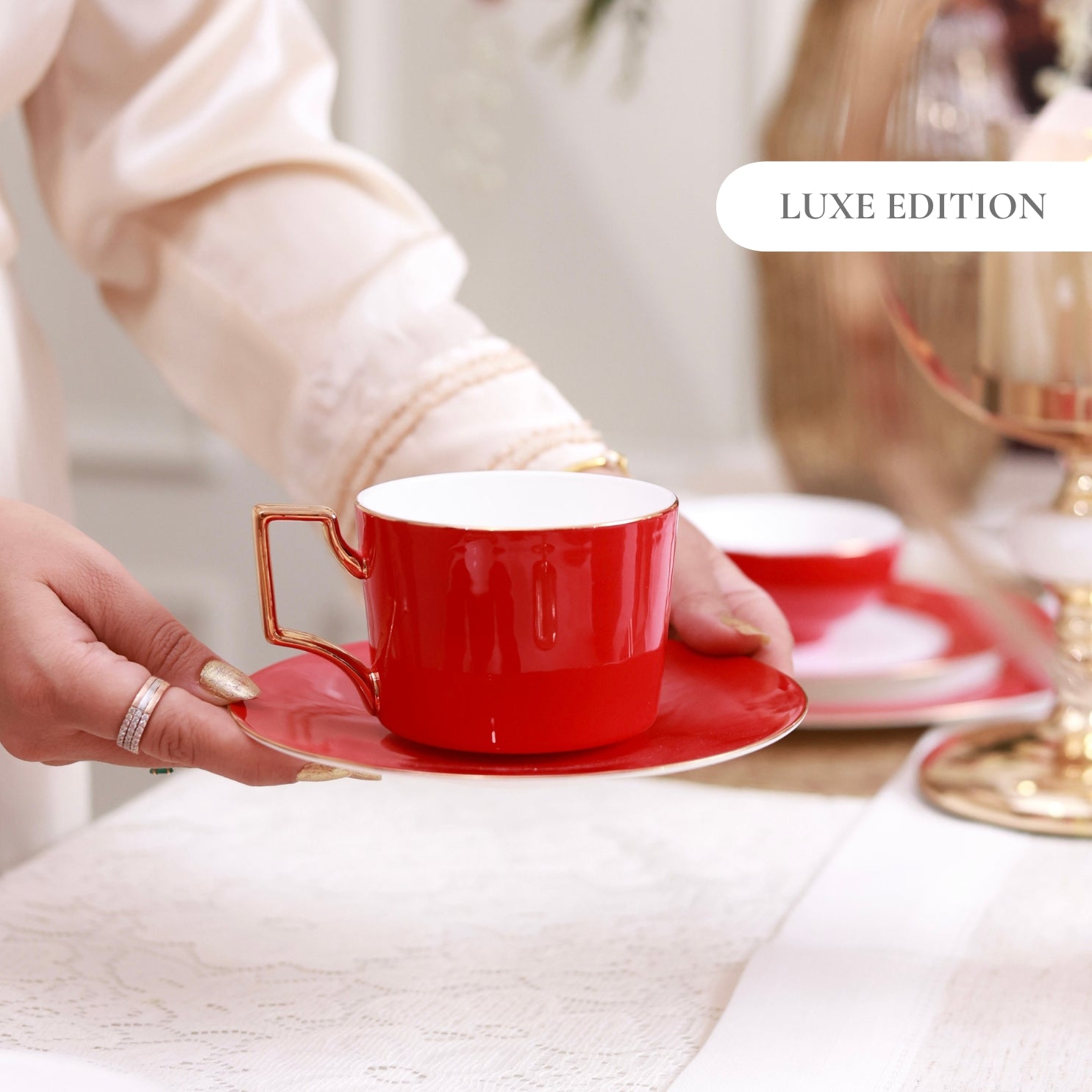 Crimson Royale Cup and Saucer Set (Luxe Edition)